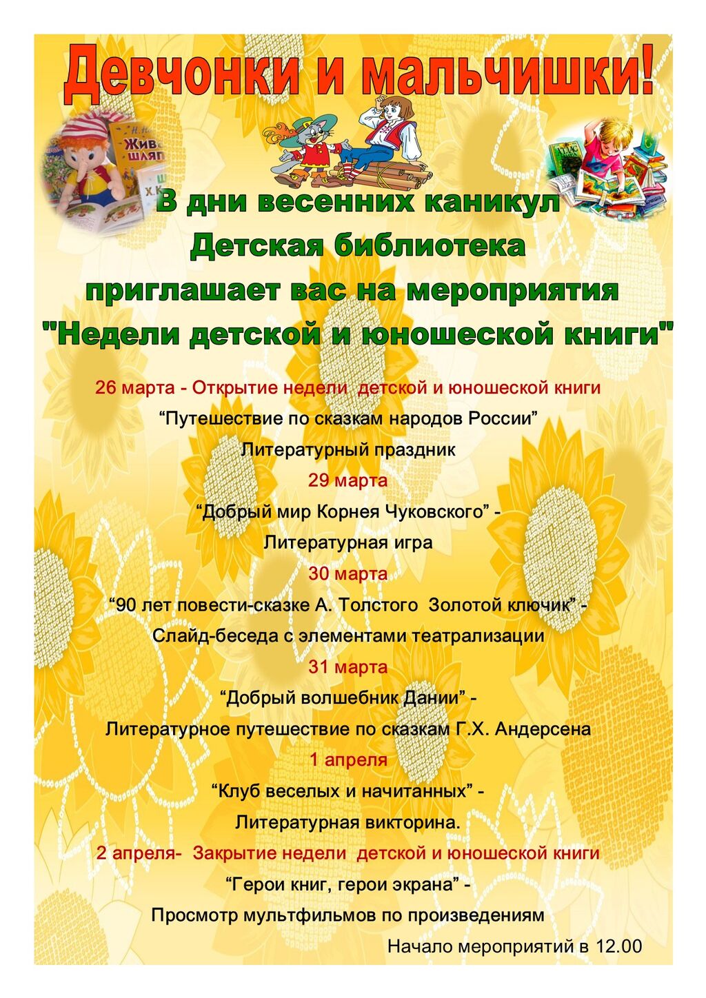 Сводный план работы Неделя Детской и Юношеской книги с 28 марта по 5 апреля 2026 года