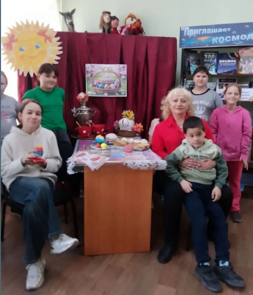 В Детской библиотеке состоялось мероприятие «Пасхальный благовест», посвящённое светлому празднику Пасхи. В начале встречи библиотекарь познакомила детей с историей, традициями и обрядами этого дня. Особое внимание было уделено пасхальным обычаям: крашению яиц, выпечке куличей и украшению праздничного стола.
